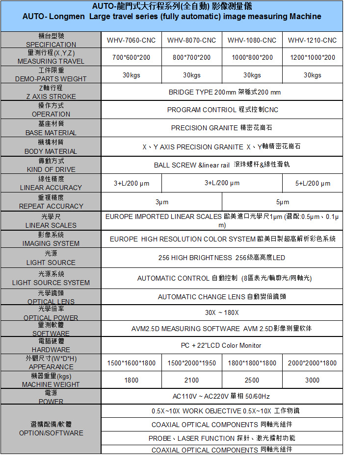 自動二次元影像測量儀是集光、機、電、計算機圖像技術於一體的新型高精度、高科技精密測量儀器。主要適用於電子、模具、線切割、塑膠射出、PCB板、導電橡膠、撓性板、導線架、電子零件組、沖壓、彈簧、螺絲、刀具、塑膠、橡膠、閥類、照相機、腳踏車零件、汽機車零件等精密加工業。
