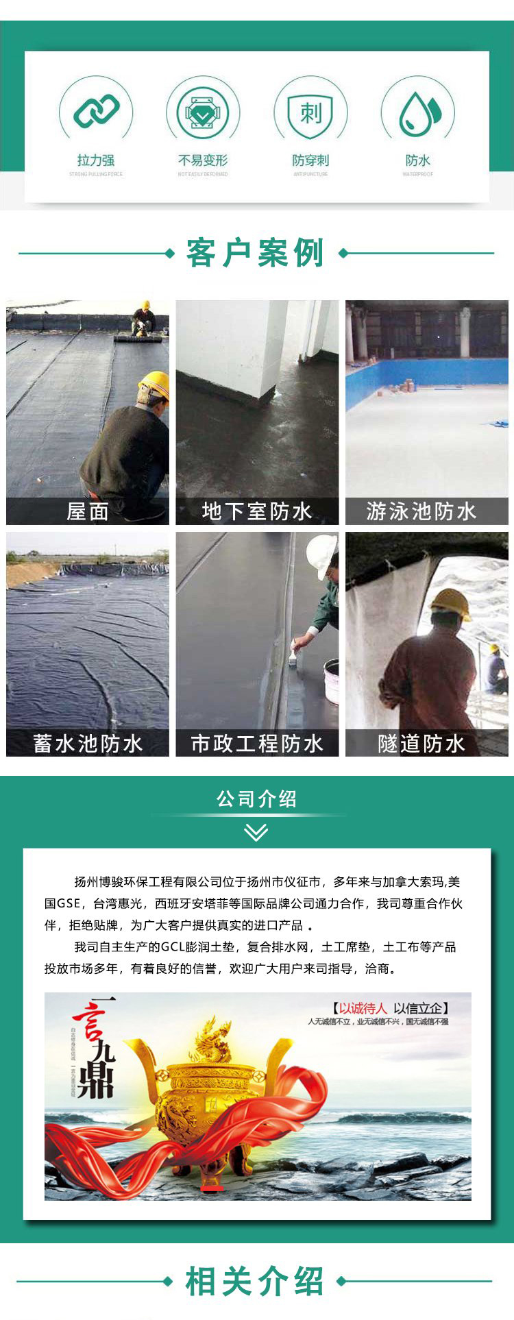 - 经营范围:进口土工膜 gse土工膜 索玛土工膜 eva防水板 隧道防水板 三维复合排水网