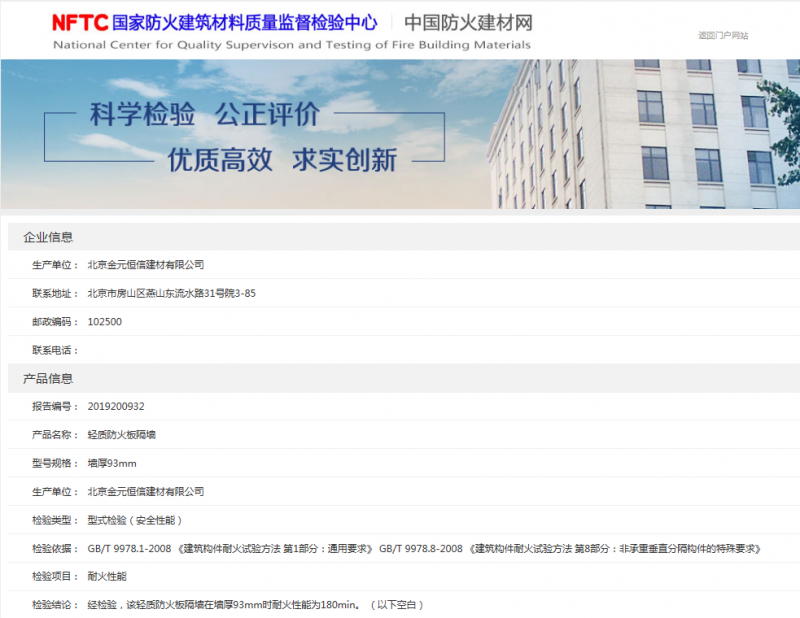 总墙厚93mm可达到防火三小时耐火时限,防火性能稳定,有防火建筑材料质量监督检测中心出具的防火墙3小时耐火时限型式检测报告。