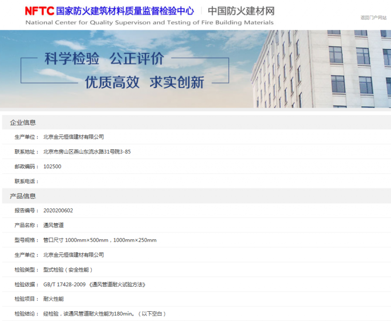 通风管道壁厚62mm可达到防火3小时耐火时限,防火完整性与隔热性能同时满足,有*防火建筑材料质量监督检测中心出具的通风管道3小时耐火时限型式检测报告。